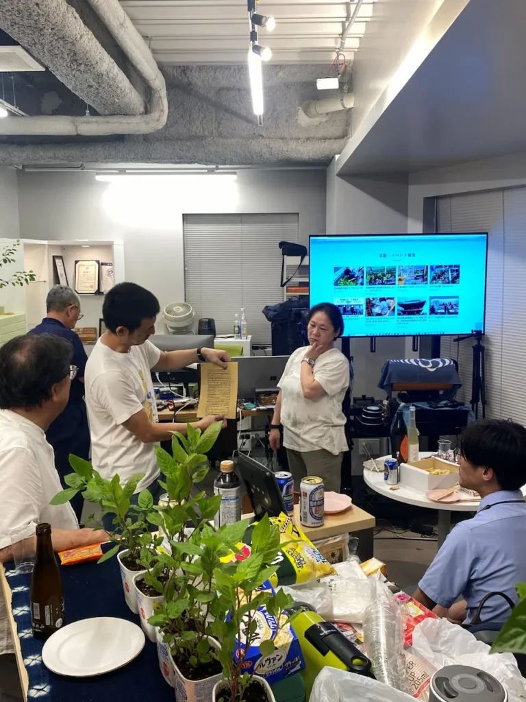 今年は会から、感謝の気持ちとして、毎日かがやきプラザの水やりで愛を注いでくだっている北井さん、ご意見番として街の皆様に藍を広げてくださる久保さん、そして麹町エリアからも「応援団・神田藍を応援し隊」を結成くださった井上さんに心を込めて感謝状をお送りしました。