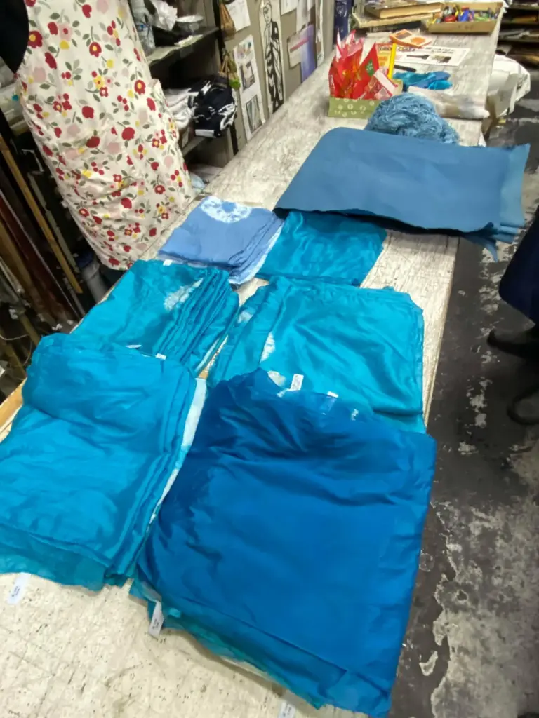 こちらは神田エリアで栽培され乾燥した藍を、皆さんから提供いただき使用しています。